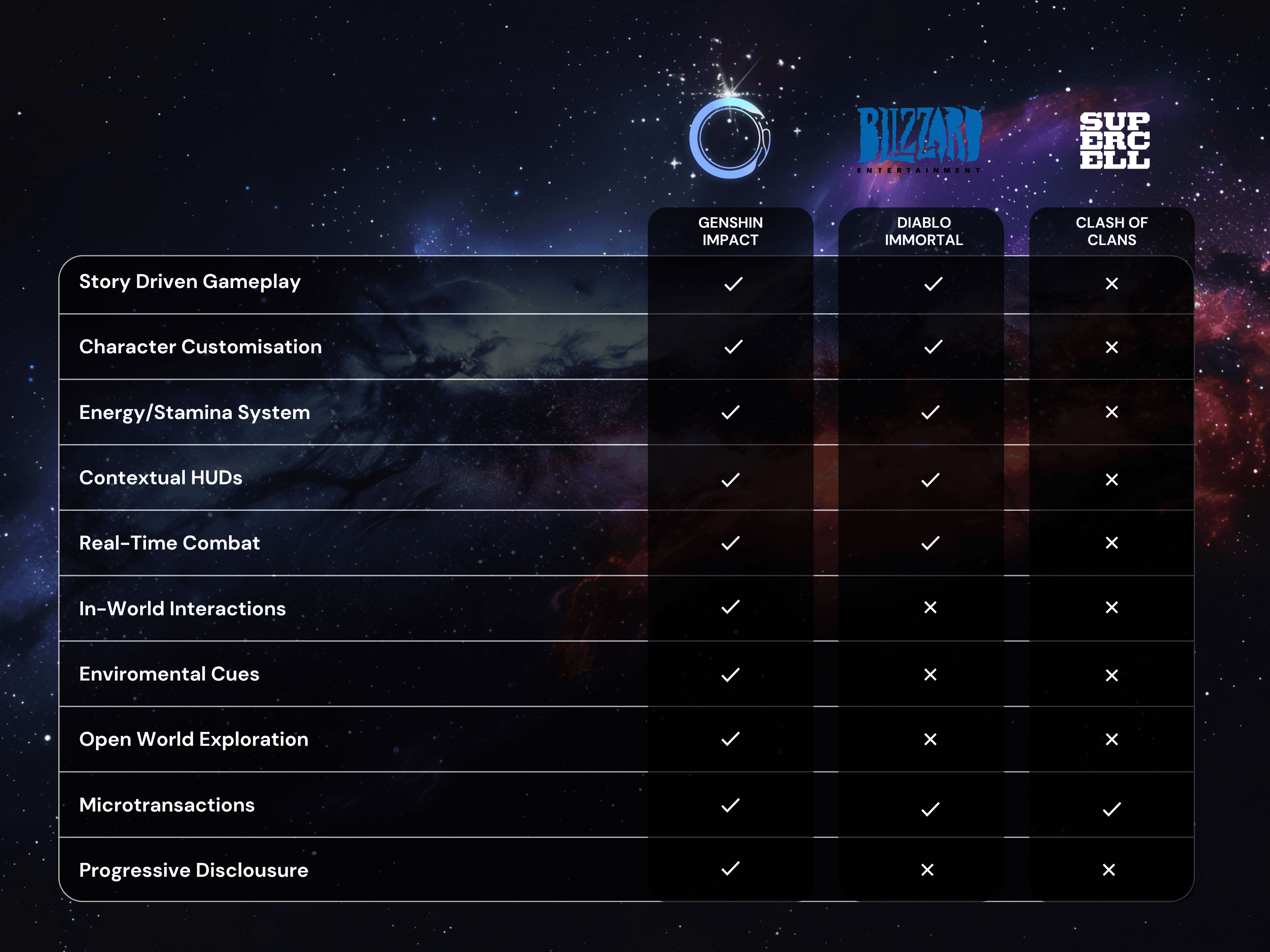 Based on tha fact I learned during my white paper research, I conducted competitor analysis on a three top mobile RPG competitors.