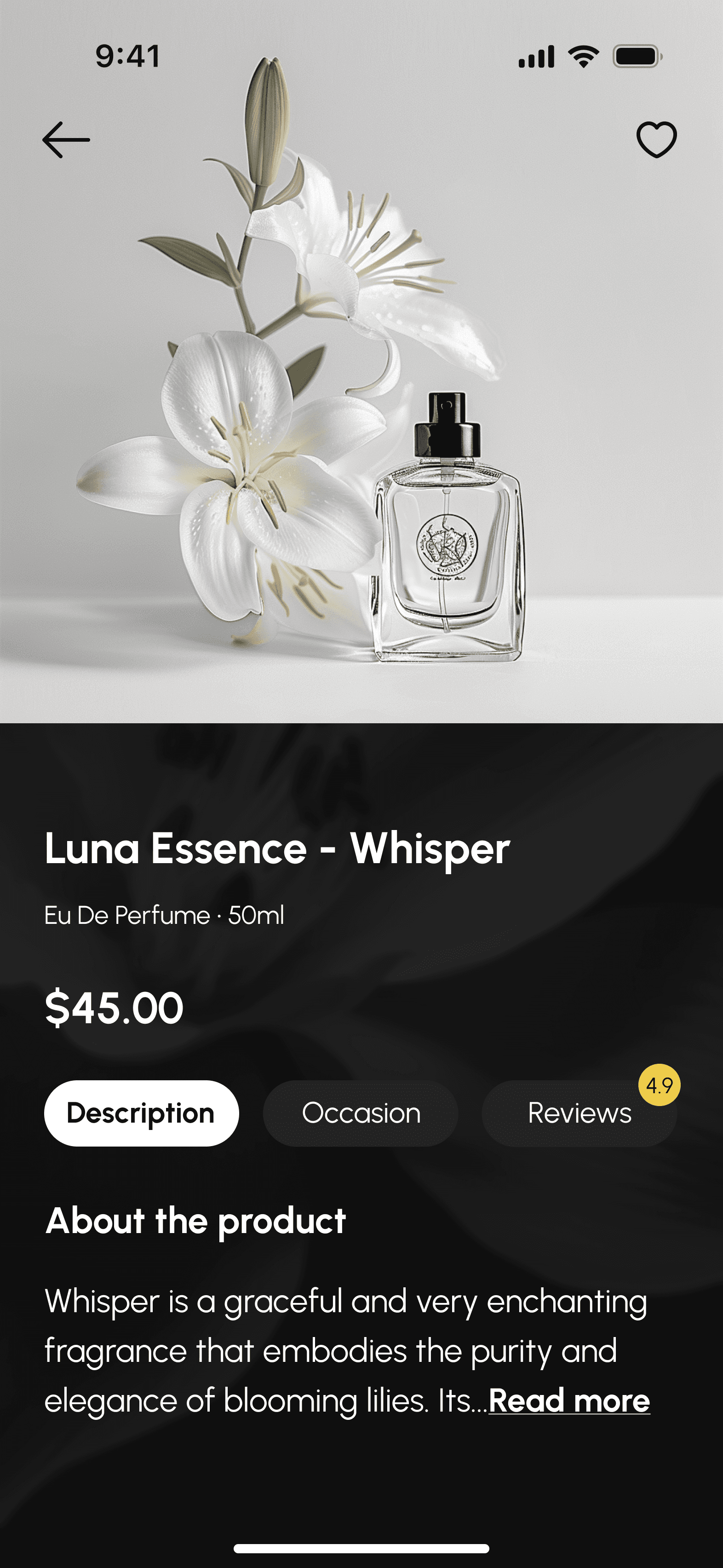 To prioritised familiarised navigation I displayed the fragrance ml, price and reviews to the very beginning of the screen.