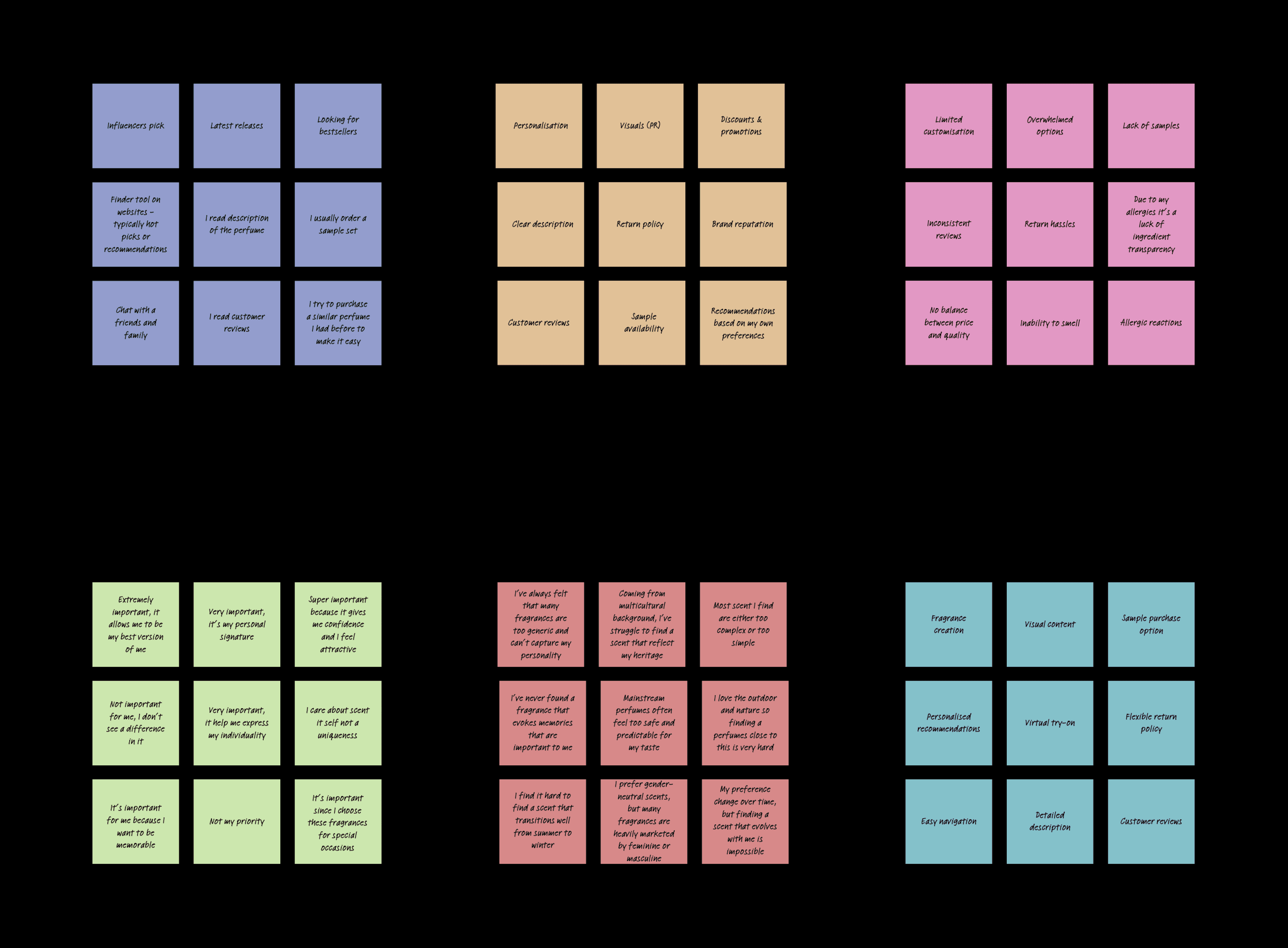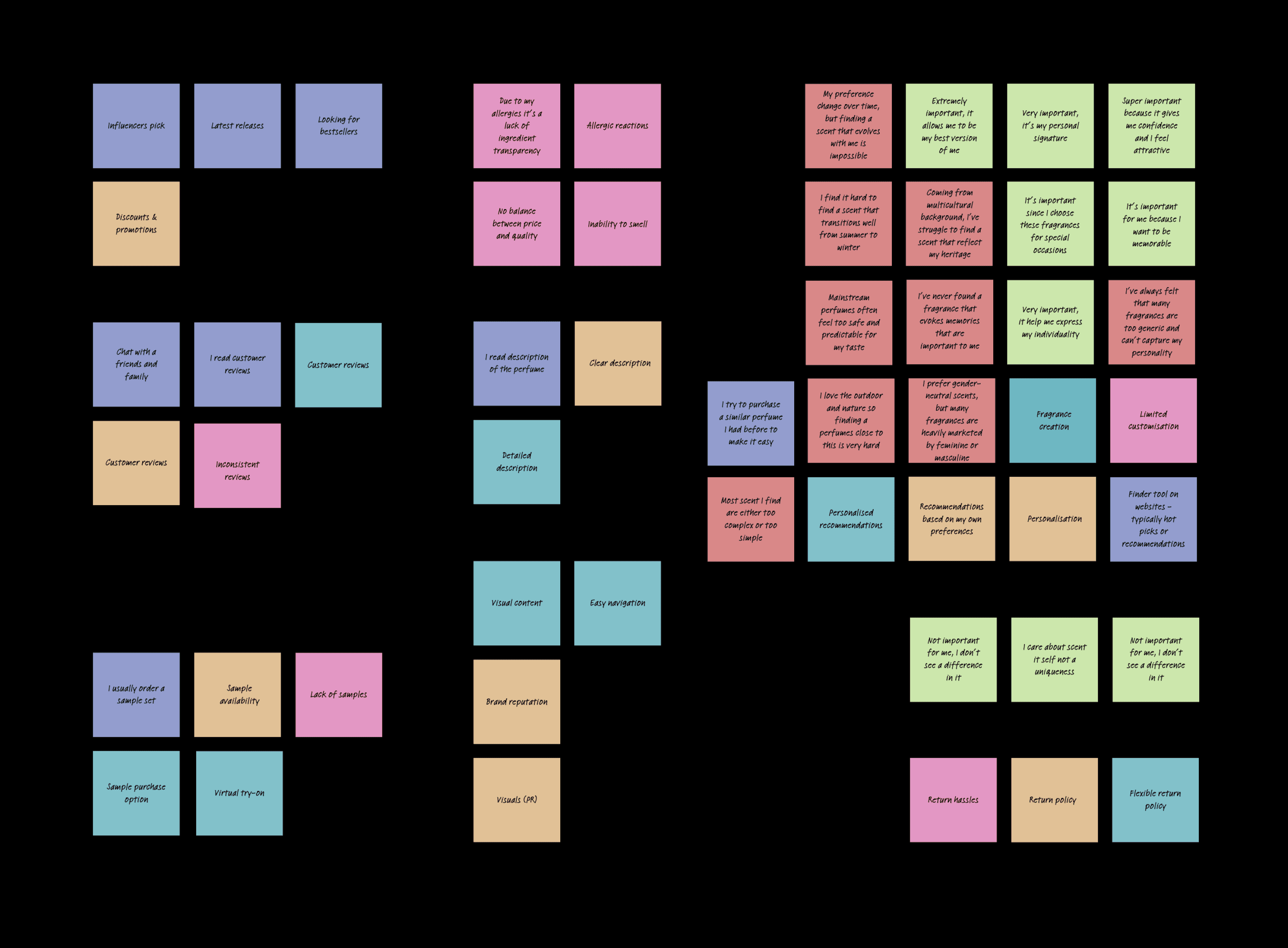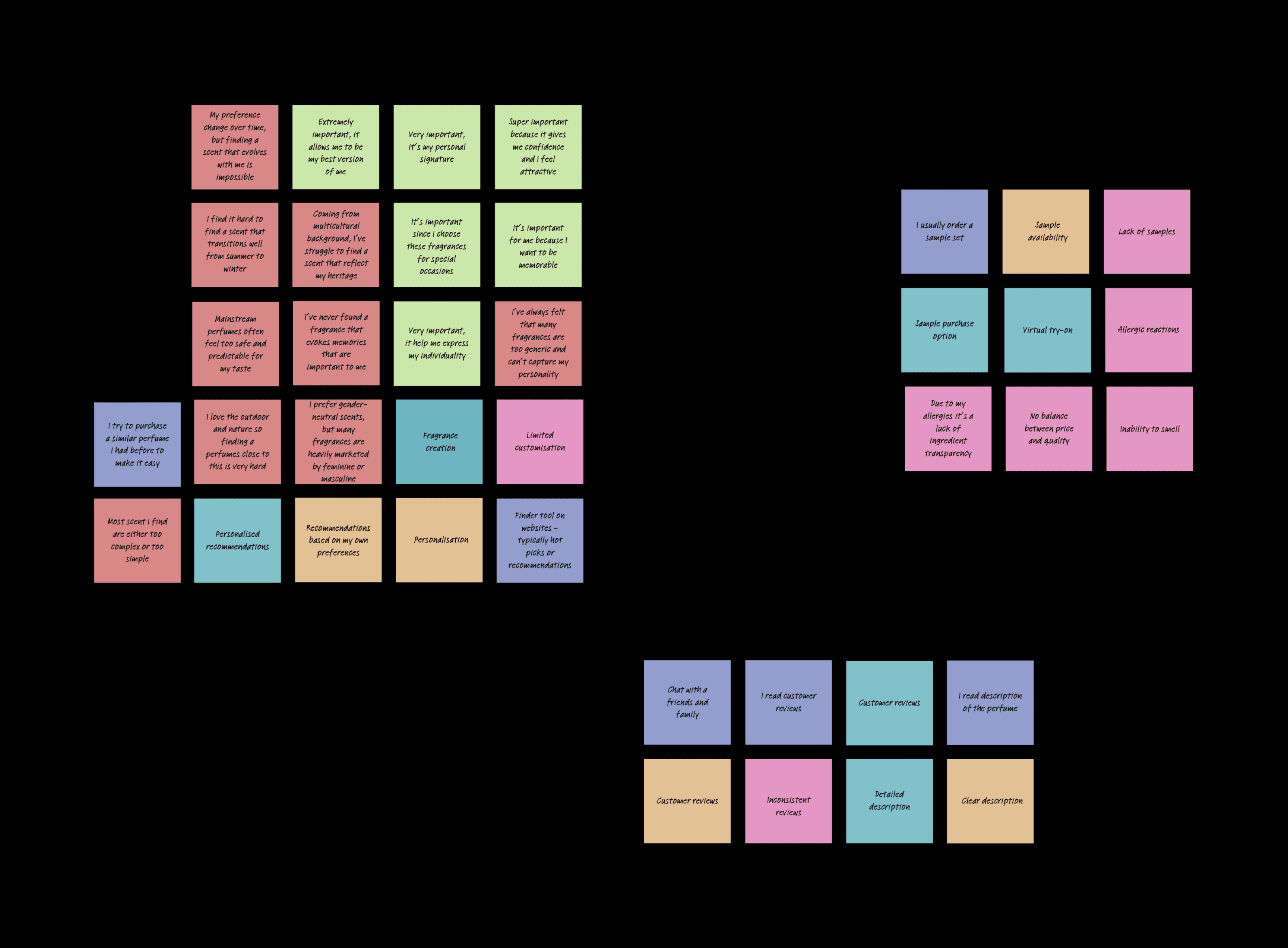 To shape the app’s design more I focused on understanding user frustrations and fears, identifying barriers and aligning with user hopes and goals. Based on this goal, I conducted user interviews and from them, I created affinity map.