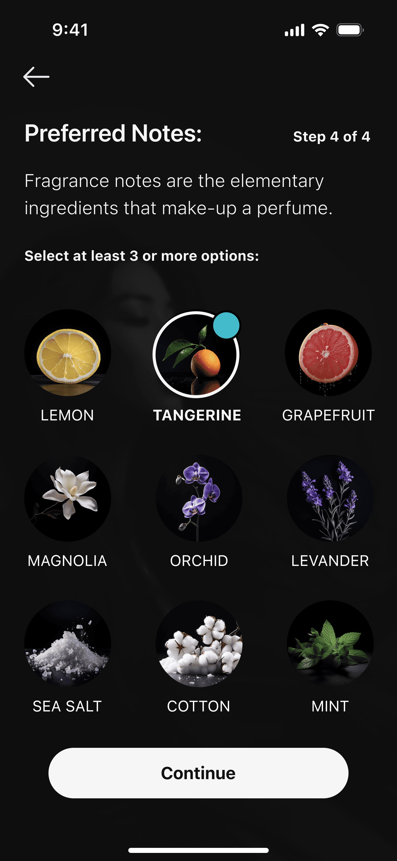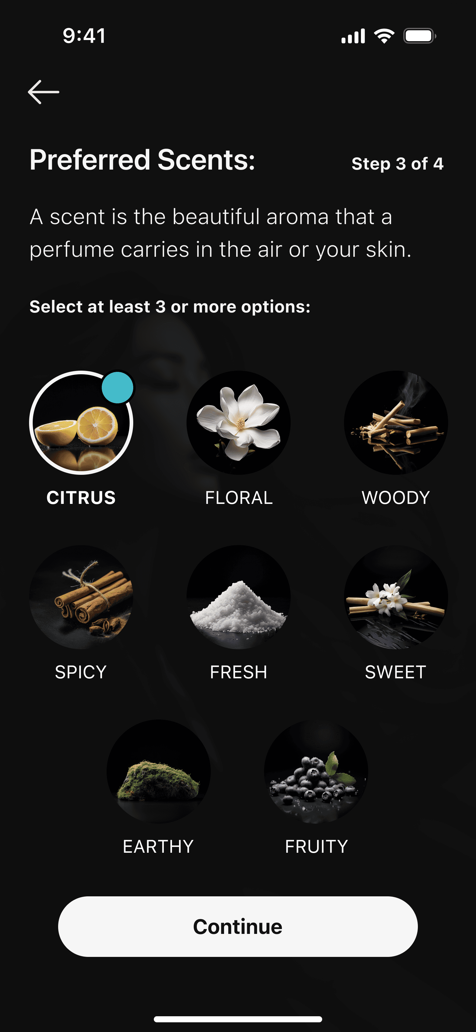 In the "preferred notes section," I added brief descriptions to help users understand and learn about the notes they choose, making it easier for them to associate with and decide on a scent.