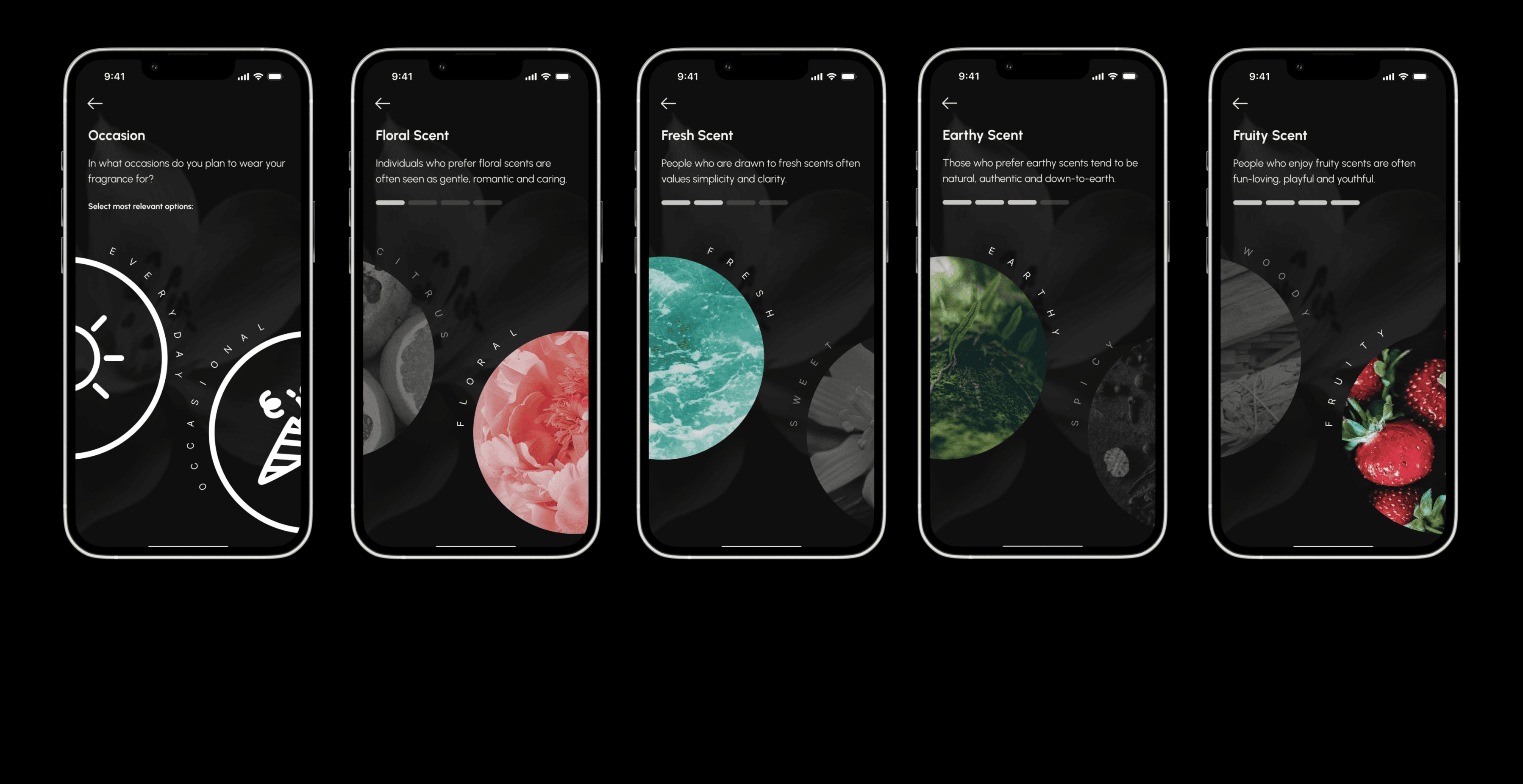 To keep the design easily scannable, I included a brief "scent description" to help users understand the fragrance and its associated emotions as well as “steps counter”.